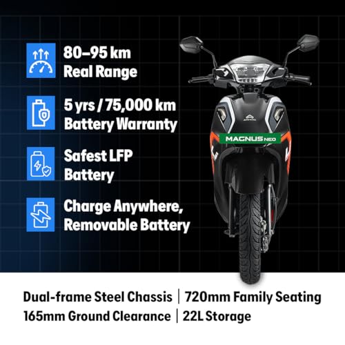 Ampere Powered by Greaves Electric Mobility Magnus Neo Electric Scooter | 80-95 km Real Range, Safest LFP Battery with 5-Year/75,000km Warranty, City-Speed Family Scooter,…,