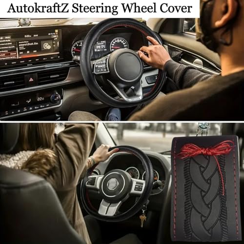 AutokraftZ Car Steering Wheel Cover – Breathable, Anti-Slip Steering Wheel Protector for Tata Nexon, Baleno, Swift, Dzire, i20, Creta, i10, Venue,…,