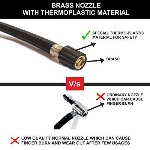 - [WITH BRAIDED RUBBER AIR HOSE] – With , thick, braided (knitted), heat-proof, rat-proof, rubber air hose for tyre inflation as opposed to a plain rubber hose found in other inflators.