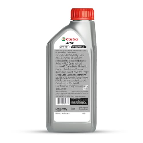 Castrol Activ 20W-40 4T Engine Oil for Bikes with Synthetic Technology (900ML) | 3X Protection with Actibond Technology | Engine Protection for bikes | API SN and JASO MA2,