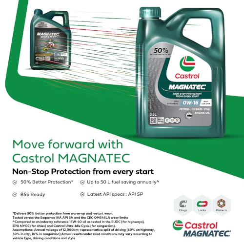 Castrol MAGNATEC 0W-16 (3.5L Pack) – Full Synthetic Engine Oil for Petrol/CNG, Hybrid and Diesel Cars (3.5L),