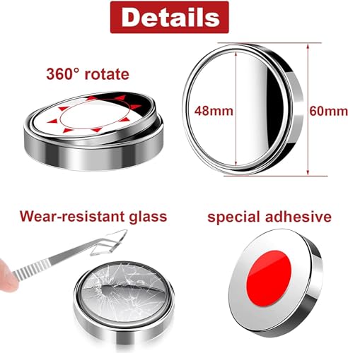 DLEST 360° Rotatable Field Of View, Convex Wide-Angle Car Blind Spot Mirror HD Outer Crystal Glass Waterproof Durable Traffic Safety, Suitable For...