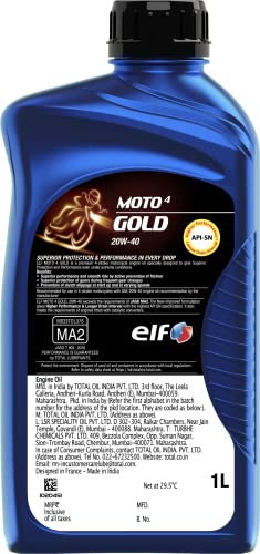ELF – Moto 4 Gold 20W-40 | API SN, JASO MA2 | Semi- Synthetic Bike Engine Oil | Anti-clutch Slippage formula – 1L,