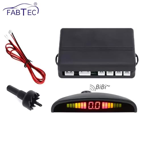 FABTEC Car Reverse Parking Sensor System, LED Display 4-Sensor Parking Assistant Kit, Backup Auto Object Detectors with Sound Warning (Black, Set…,