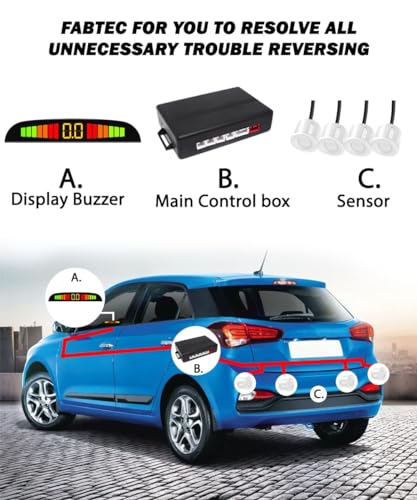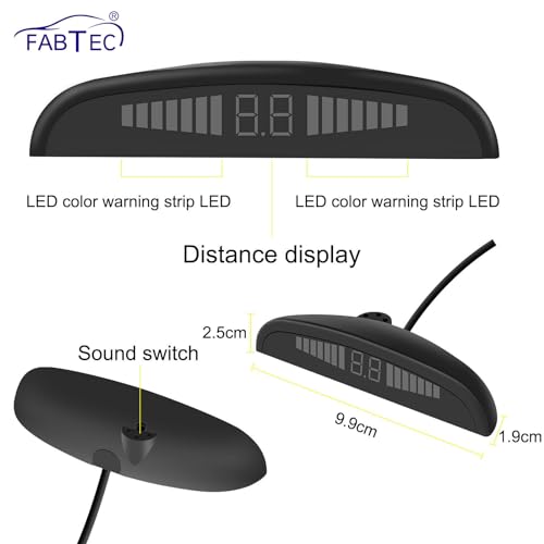 FABTEC Car Reverse Parking Sensor System, LED Display 4-Sensor Parking Assistant Kit, Backup Auto Object Detectors with Sound Warning (Black, Set…