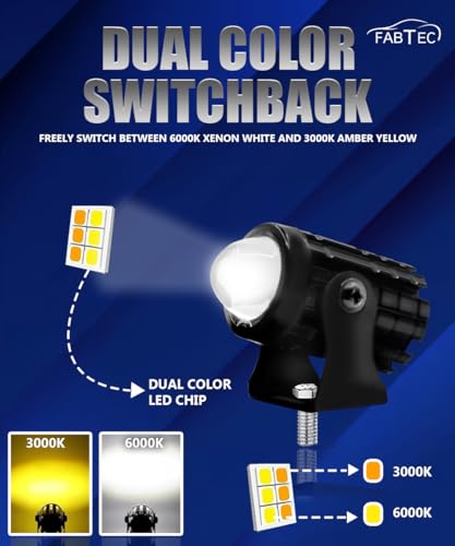 FABTEC Mini Driving Flasher Fog Light Lamp Projector Lens LED Spotlight Dual Color Led Light System for Motorcycle, Bikes & Scooters with On-Off…,