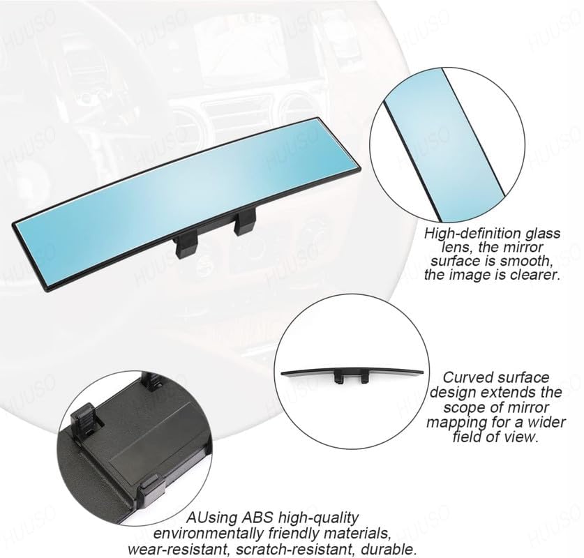 - 【More longer and wider】: The size of this blue broadway rear view mirror is12X3inch, More longer and wider than most of rear view mirror.Eliminates blind spots in the rear-view, and improves driving safety.Widely used for most car, truck, SUV and so on.