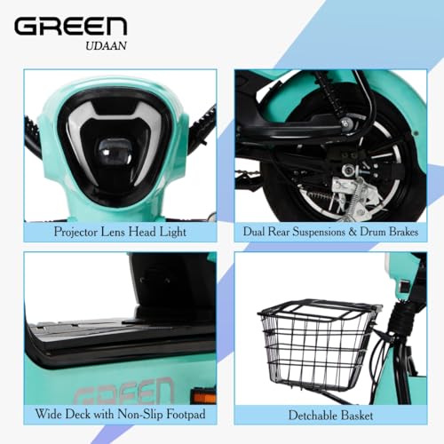Green Udaan Low Speed Electric Scooter Non RTO 30 KM Range with Portable Charger (Green),