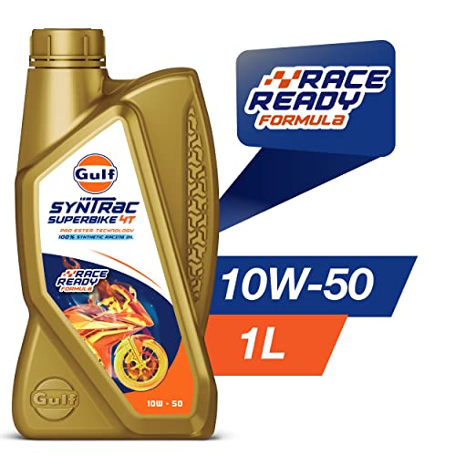 Gulf Syntrac Superbike 4T 10W-50 MLP[1L] API SN JASO MA2 Fully Synthetic Engine Oil for 2 wheeler bikes with Premium PAO Ester Technology for peak…,