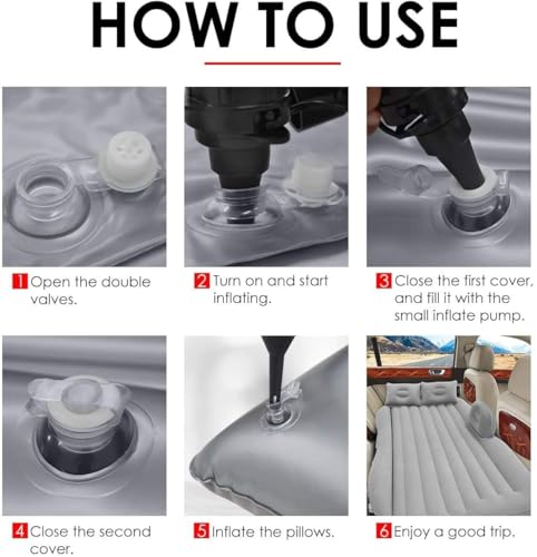 - Easy to Carry and Use: The Back Seat Car Inflatable Mattress Fits the Car Perfectly, As Soon As You Connect the Electric Pump to the Car Lighter Socket, It Will Complete a Quick and Easy Inflation in Two Minute
