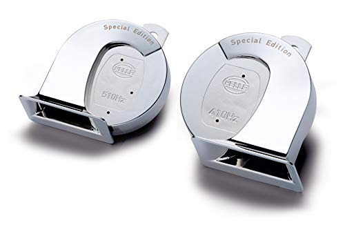 Hella 007728883 Chrome Trumpet Horn Set ( 12V,400/500 Hz,105 -118 dB @ 2m) for Passenger Car