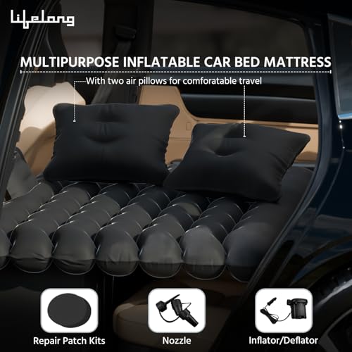 Lifelong Inflatable Car Mattress with Pump & 2 Air Pillows - Quick Inflatable Back Seat Bed, Portable Compact Car Bed for Camping, Road Trips,...