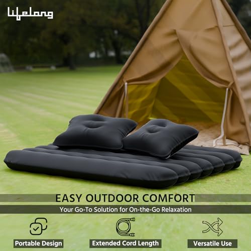 ‎Lifelong Inflatable Mattress with Pump & 2 Air Pillows – Quick Back Seat Mattress, Portable & Compact for Camping, Road Trips, Adults & Kids (Black)