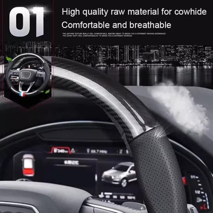 - ⚙️【DRIVING PLEASURE】: Sport-Style Brings Vivid Colors Into Your Car, The Steering Wheel Covers Leather Offers Users A Very Comfortable Driving Pleasure, While The Steering Wheel Cover Provides A Visual Enhancement Of The Vehicle.