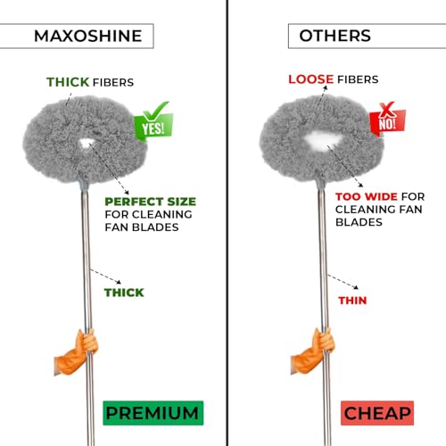 - A Convenient Dust Cleaner for Home Cleaning: Brush head of Maxoshine Fan Cleaner Mop is removable, which makes cleaning and storing simple. As well as it ensures easy storage and mobility, Maxoshine ceiling cleaning brush with long handle is a gadget for daily life can also be placed on a hook hole for drying after use.