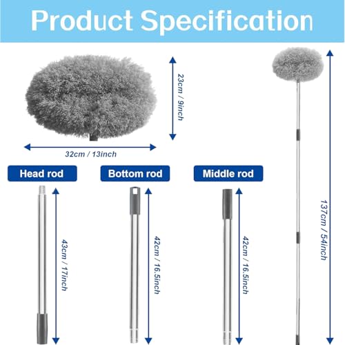 - Specification: Included components: 3 rods and 1 duster, Duster: Microfiber, Rod: Disassemble Rod, Height: 120 cm Washing instruction: Hand wash only Other Usage: window cleaner brush, wall cleaning mop