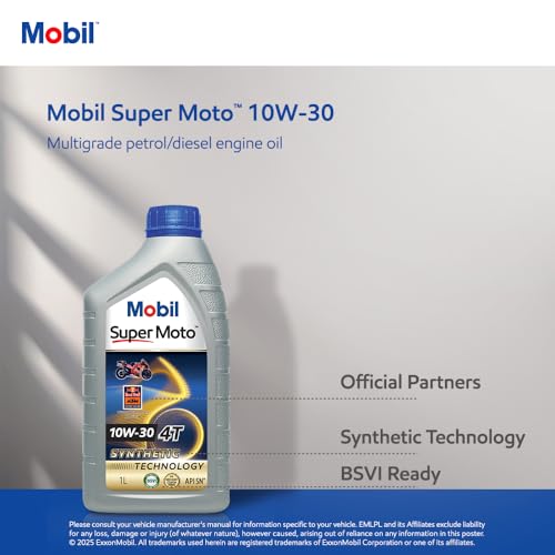 Mobil Super Moto 10W-30 Synthetic Technology Engine Oil for Bikes (1L),