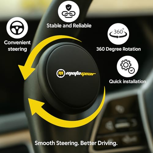 MOTOGEAR Universal Car Steering Wheel Knob Rotary Knob Spinner Handle for Cars 360 Rotation for Car Tractor Truck (Black),