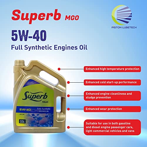 PISTON Superb MGO 5W-40 API SN Fully Synthetic Engine Oil For Petrol,Diesel & Cng Cars (3.5 L),