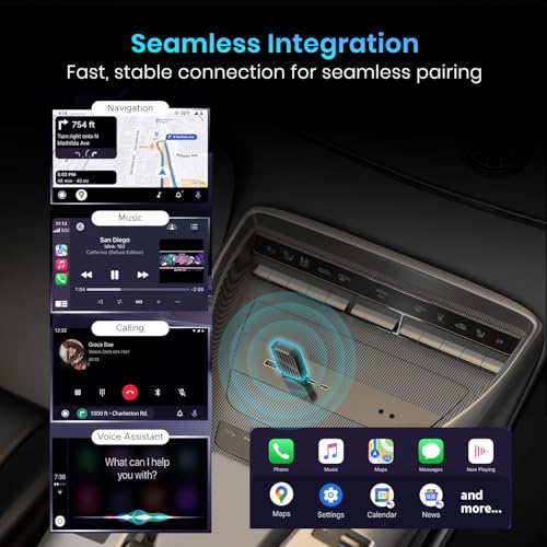 - Seamless Wireless Conversion: Converts wired Apple CarPlay and Android Auto to wireless, letting you access apps, music, and navigation hands-free directly from your smartphone.
