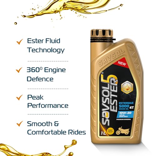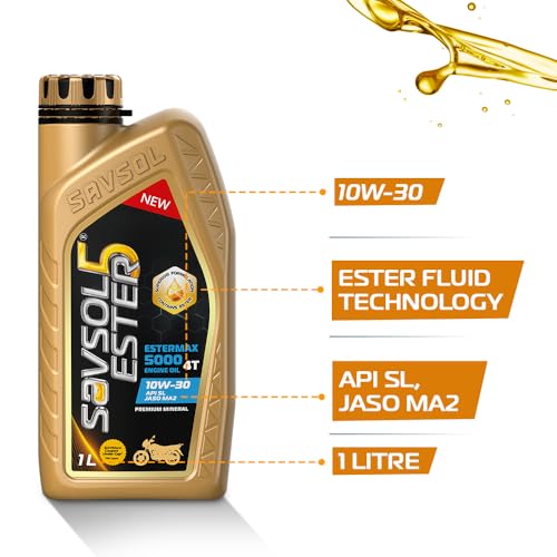 SAVSOL ESTER5 ESTERMAX 5000 4T 10W-30 | Premium Engine Oil for Bikes (1L) | Contains Ester formulation | Prolongs Engine Life | Reduces Wear & Tear…
