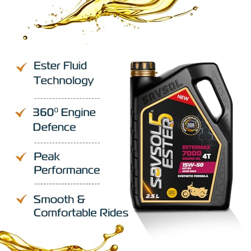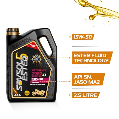 SAVSOL ESTER5 ESTERMAX 7000 4T 15W-50 | Synthetic Bike Engine Oil (2.5L) | With Advanced Ester Fluid Technology| Smooth Cruising Experience |4X…,