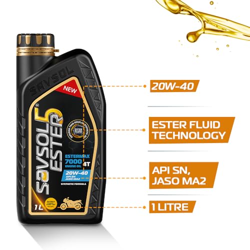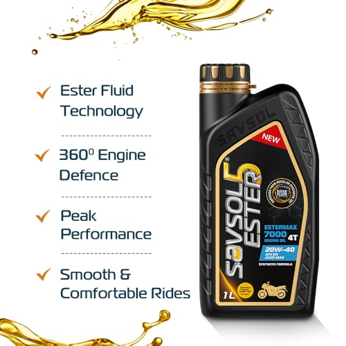 SAVSOL ESTER5 ESTERMAX 7000 4T 20W-40 | Synthetic Bike Engine Oil (1L) | With Advanced Ester Fluid Technology| Smooth Cruising Experience |4X Heat…,
