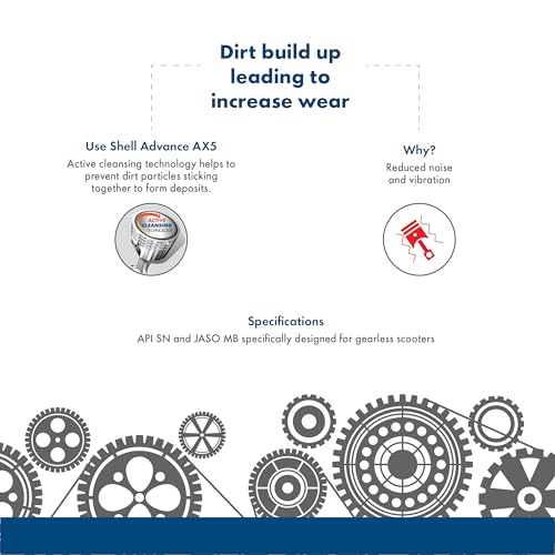 - Specifications: API SL and JASO MB specifically designed for gearless scooters