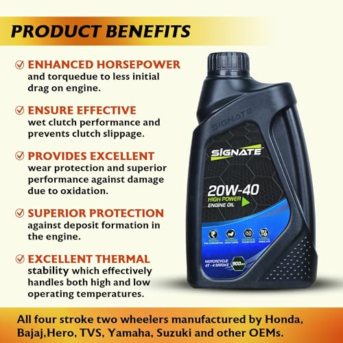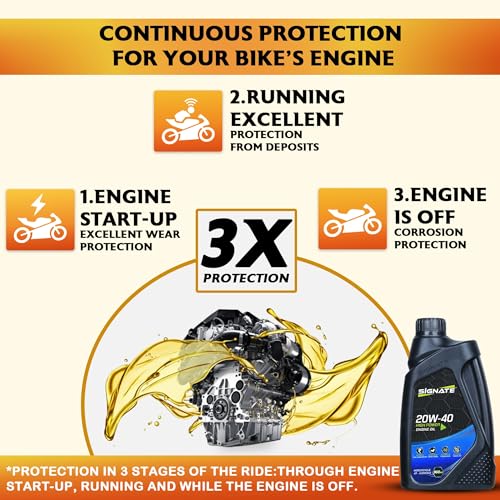 Signate 20W40 Engine Oil for Bikes 900ML, 4 Stroke Engine Oil for Motor Cycle, Maximum Gear Protection & Efficient Performance Bike Oil,
