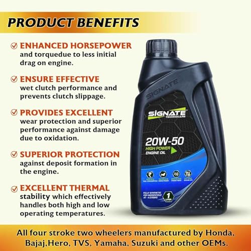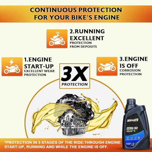 Signate 20W50 Street Race Bike Engine Oil 1L, High Performance Engine Oil for Motor Cycle, Maximum Gear Protection & Efficient Performance Bike Oil, 1L,