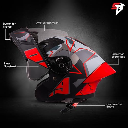 Steelbird SBA-20 09 ISI Certified Flip-Up Graphic Helmet for Men and Women with Inner Chrome Sun Shield