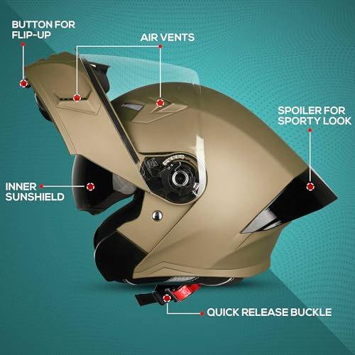 - Comes with easy flip up mechanism. Quick release chin guard flipup mechanism with one button.