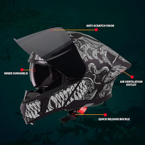 - Comes with easy flip up mechanism. Quick release chin guard flipup mechanism with one button.