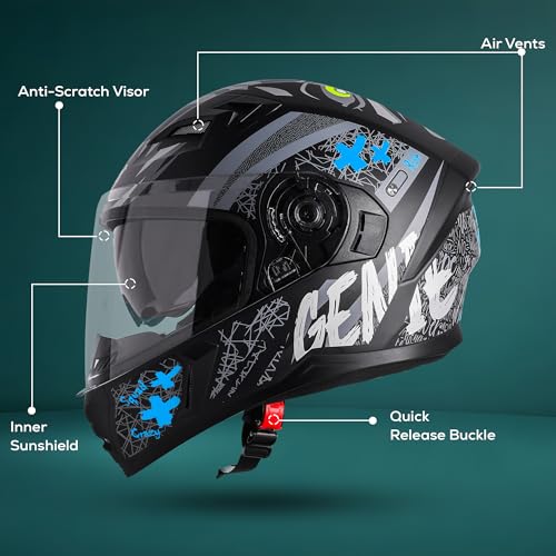 Steelbird SBA-21 Genie ISI Certified Full Face Graphic Helmet for Men and Women with Inner Smoke Sun Shield,