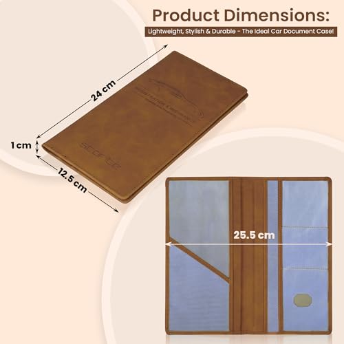 • Compact Size: With the perfect size dimensions of 5.0in x 9.4in x 0.4in, this vehicle license and registration holder for car will fit into glove compartments, sun visors, door holders, consoles, etc. The glove box organizer is precisely designed to fit all of your car documents.