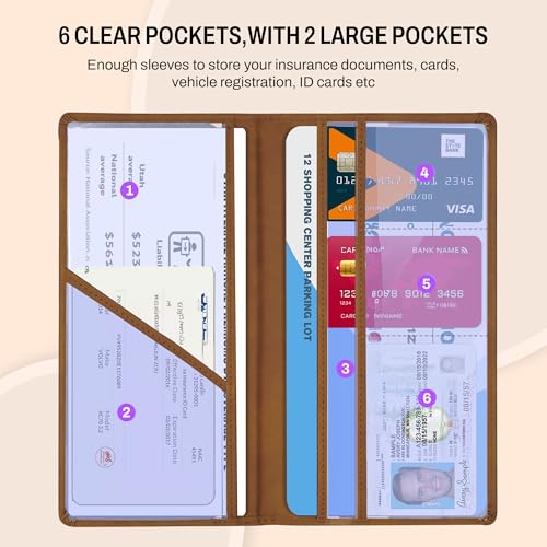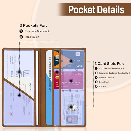 • Quick Accessible: Inside the car insurance and registration card holder, the clear inner material makes you easy to find documents when you open it up, you can see exactly what they are and quickly show them when asked, even no need to take the stuff out.
