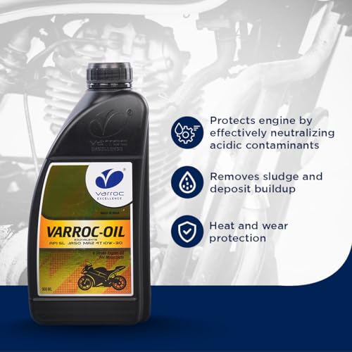 VARROC 10W30 Engine Oil for Bikes, High Friction Modifiers,High Fuel Economy, Ideal for Bikes and Scooters (900ML),