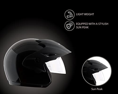 Vega Cruiser ISI Certified Lightweight & Compact with Peak Open Face Helmet for Men and Women with Clear Visor(Black, Size:L),