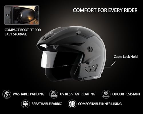• Material: The helmet has a High Impact ABS material shell, offering durability and protection. Certification: It is ISI Certified, confirming it meets safety standards.