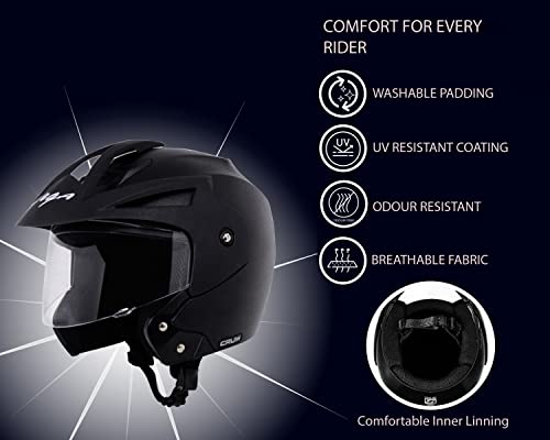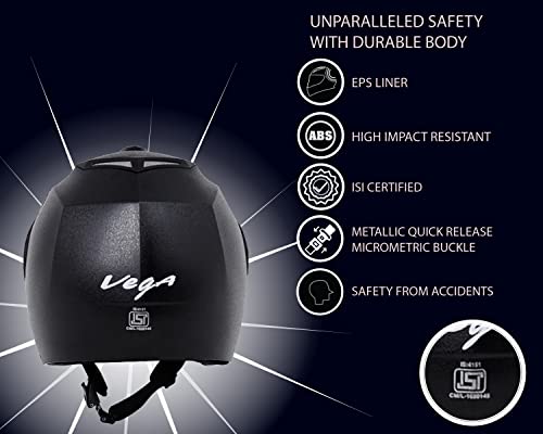 - Material: The helmet has a High Impact ABS material shell, offering durability and protection. Certification: It is ISI Certified, confirming it meets safety standards.