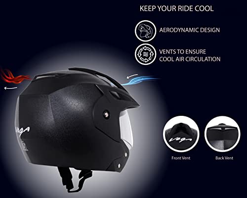 Vega Crux ISI Certified Flip-Up Helmet for Men and Women with Clear Visor(Black, Size:M),