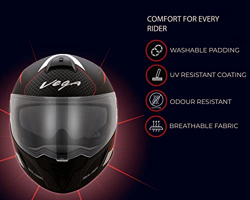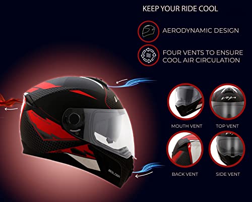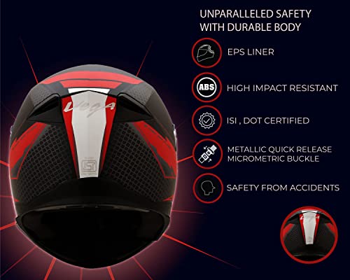 Vega Ryker Bolder ISI Certified Matt Finish Full Face Dual Visor Helmet for Men and Women Outer Clear Visor and Inner Smoke Sun Visor(Dull Black Red, Size:L),