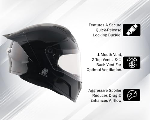 Vega Sonic Solid ISI Certified Gloss Finish Full Face Helmet for Men with Clear Visor and Spoiler-Black-M,
