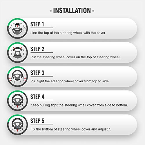 • Easy Installation: You can heat the car wheel cover in the sun or with a hair dryer, places the cover on the top of the steering wheel and uses both hands to slowly tighten it on both sides until it fits perfectly with the steering wheel. Flexible disassembly, won’t affect the daily cleaning of your car, which will help improve your health and living standards.