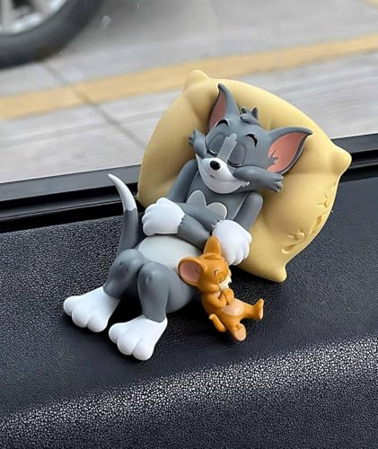 YOURKARTS.COM Cartoon Character Dashboard Toy Cute T&J Sleeping Figurine in PVC Build | Fun Car Interior Showpiece or Tabletop Gift for Kids,…